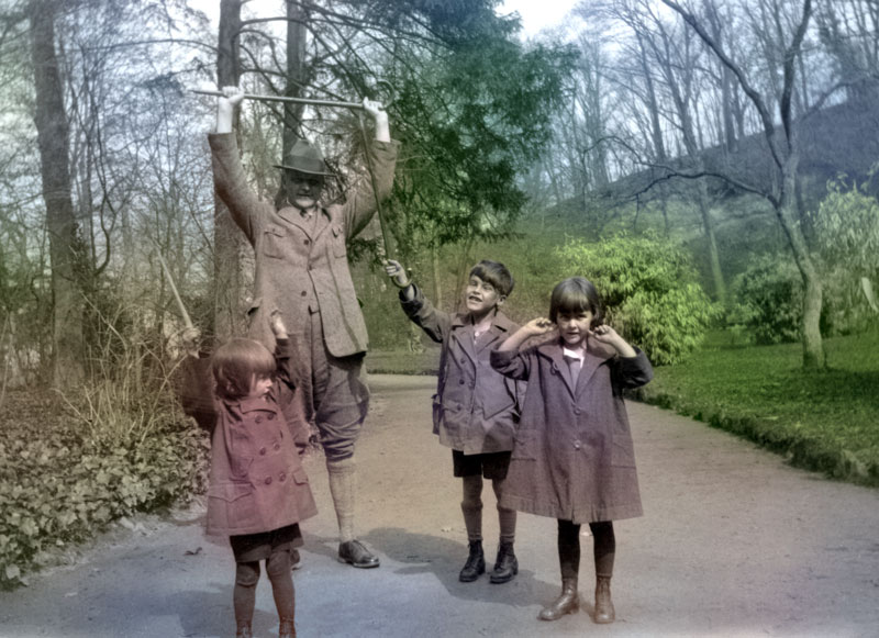V.v.Weizsäcker mit Kindern am Schloss Heidelberg, 1929